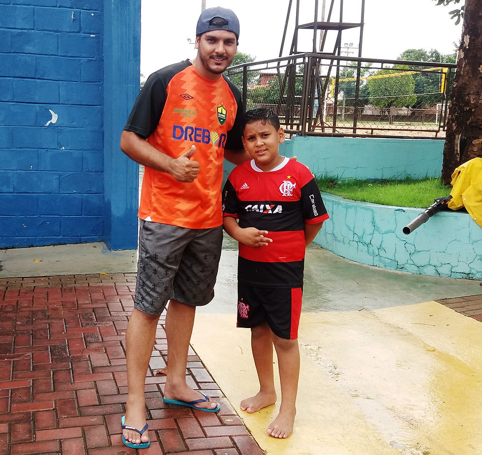 A Escolinha da AABB, que retomou o funcionamento no dia 23 de janeiro, tem muitos alunos que ainda não retornaram e só devem se reapresentar nos próximos dias. Mas um dos alunos presentes na aula da chuvosa manhã do último sábado (27/01) estava com um acompanhante ilustre, que é tio dele, Diego Garcia, ex-aluno da Escolinha de Futebol da AABB, também conhecido como Mão de Onça.