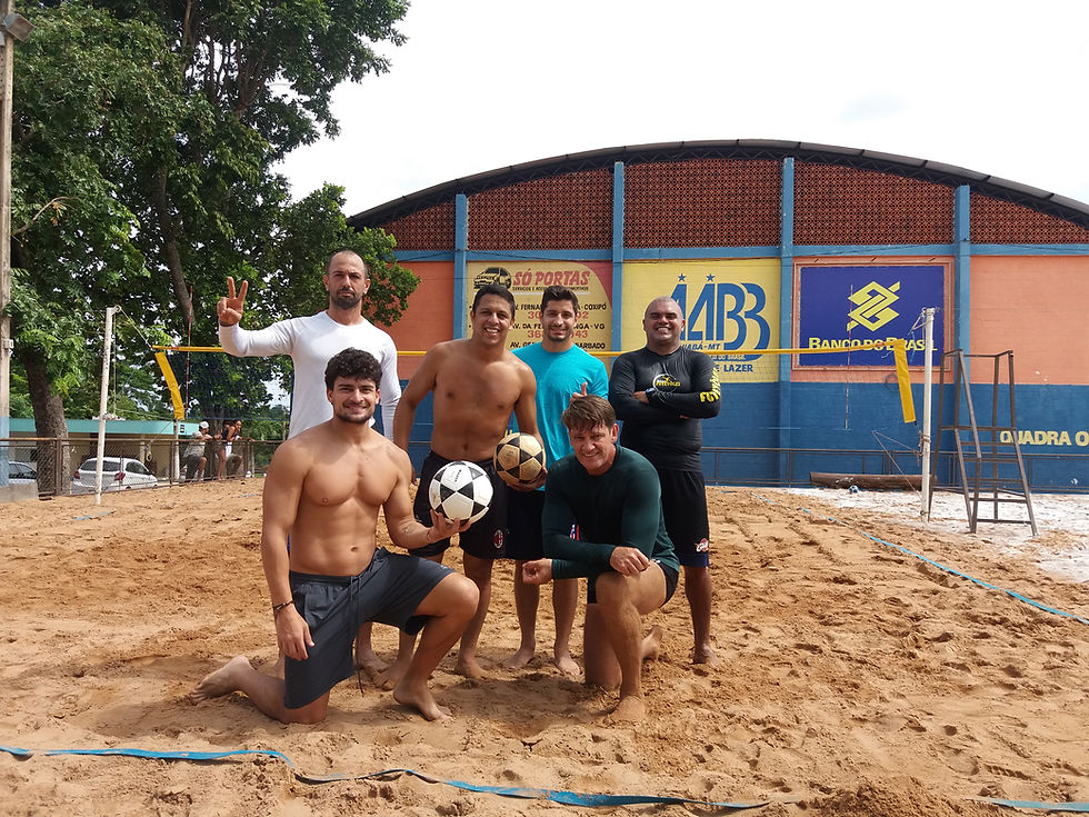 O futevôlei foi uma das atrações da AABB Cuiabá neste sábado de manhã, por conta do Alex Luiz Jr, Carlinhos Hulk, Henri, Danilo, Robson e Fábio. Eles são atletas do New Futevôlei, que joga na AABB todas as sextas-feiras, sábados e domingos.