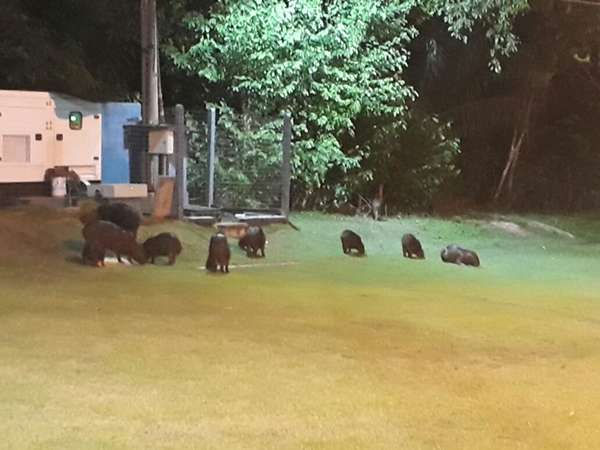 Tem um campo de futebol, por exemplo, próximo do Rio Coxipó, que se de dia é frequentado por atletas de noite é todo delas. Tem umas 30 capivaras ou mais, muitos filhotes, inclusive.