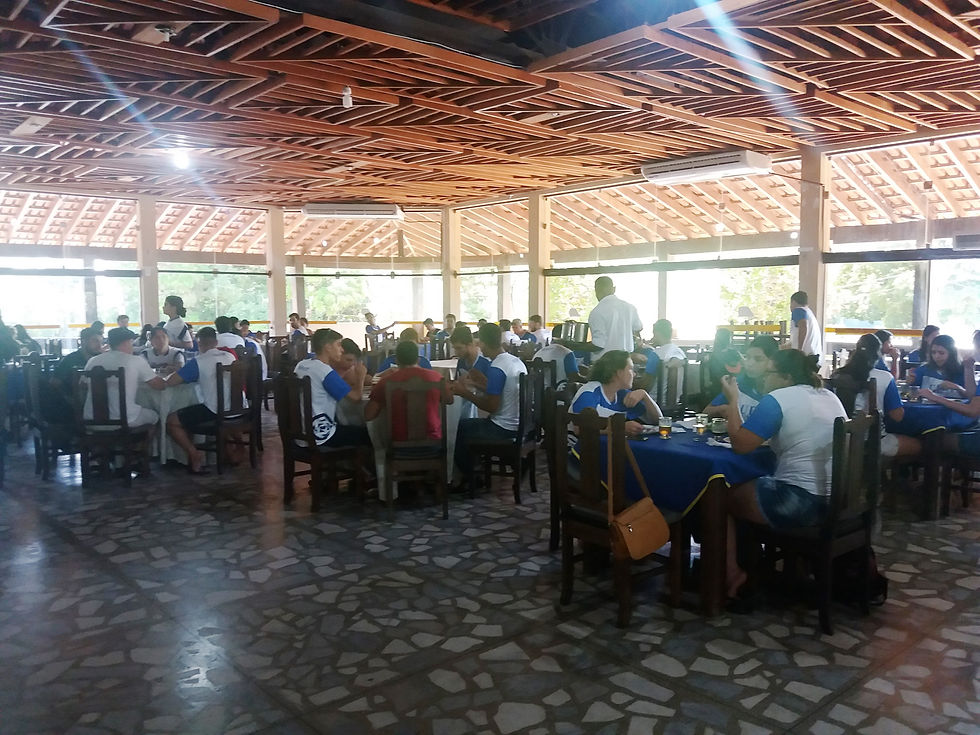 Cerca de 100 atletas vieram almoçar na AABB neste sábado (28/04). Eles estão participando dos Jogos Universitários Mato-grossenses (JUM's), que vai de hoje até o dia 1º de maio, em Cuiabá, com as modalidades coletivas de vôlei, basquete, futsal e handebol. Vale lembrar que o presidente da Federação Mato-Grossense de Esportes Universitários, Elvis Magalhães, foi professor da Escolinha de Natação da AABB Cuiabá.