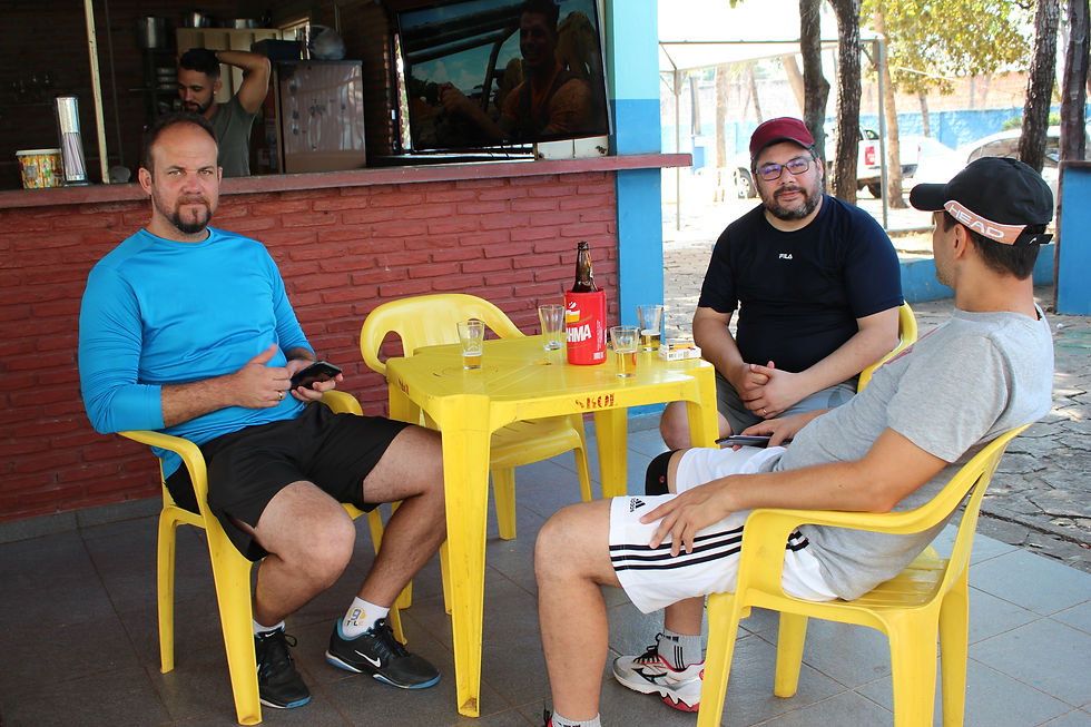 O gaúcho Léo Medeiros, associado da AABB Cuiabá há mais de 20 anos, é um dos ilustres aniversariantes deste sábado, 04 de agosto. Para festejar a data, ele reuniu os amigos e familiares na churrasqueira próxima às quadras de tênis, onde jogam todos os sábados de manhã há muitos anos. Um dos integrantes de seu grupo de amigos é outro jogador de tênis, Jorge Watanabe, que no entanto também joga futebol, e o time dele por sinal é o Brasil da categoria super master, um dos finalistas do campeonato da AABB, cujos jogos serão no dia 11 de agosto. Além dos amigos do senhor Léo Medeiros, os parentes do Sul do país também vieram para a confraternização, que teve chimarrão, costela ao fogo de chão e carneiro na brasa de lenha. Parabéns, sr. Medeiros!