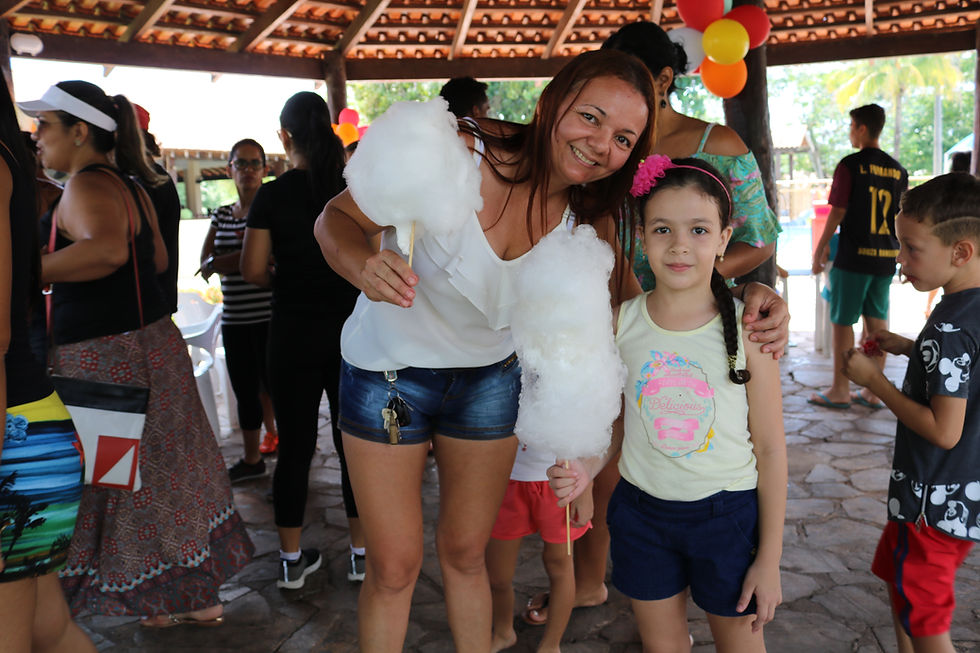 Como acontece todos os anos na AABB, teve muitas brincadeiras para a criançada, e os adultos se divertiram como crianças. Teve pipoca, sorvete, algodão-doce e pirulito à vontade, além de muitas brincadeiras e piscina liberada até o meio-dia.