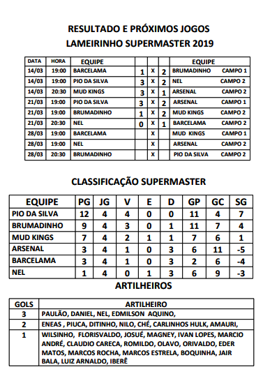 Após os jogos da última quinta-feira, a equipe Pio da Silva ganhou mais uma vez e chegou aos 12 pontos. Veja os resultados dos jogos de quinta-feira, bem como a classificação e os próximos jogos.