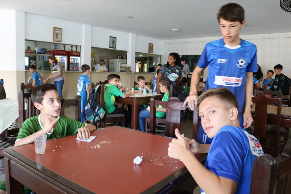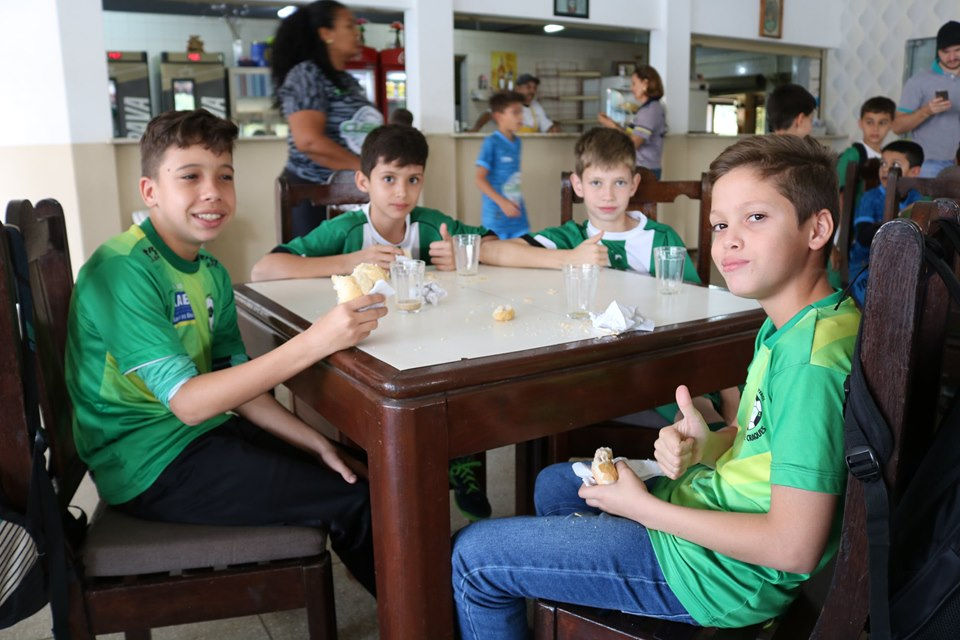 As aulas deste sábado na escolinha desportiva da AABB Cuiabá ganharam um toque especial com a vinda dos alunos de Primavera do Leste para mais um belo torneio de futebol. da gurizada. O embarque da gurizada rumo a Cuiabá foi de madrugada, e o café da manhã foi servido aqui na AABB.