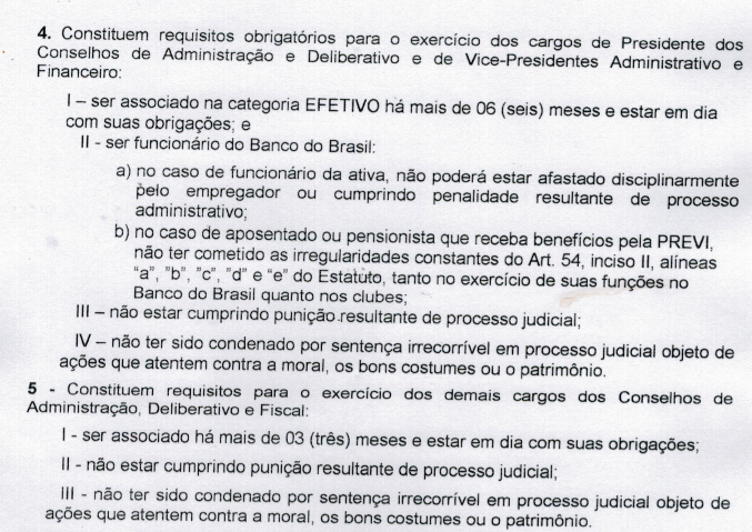 De acordo com o regulamento, poderão participar do pleito todos os associados que estiverem em pleno exercício de seus direitos e deveres na data da convocação das eleições.